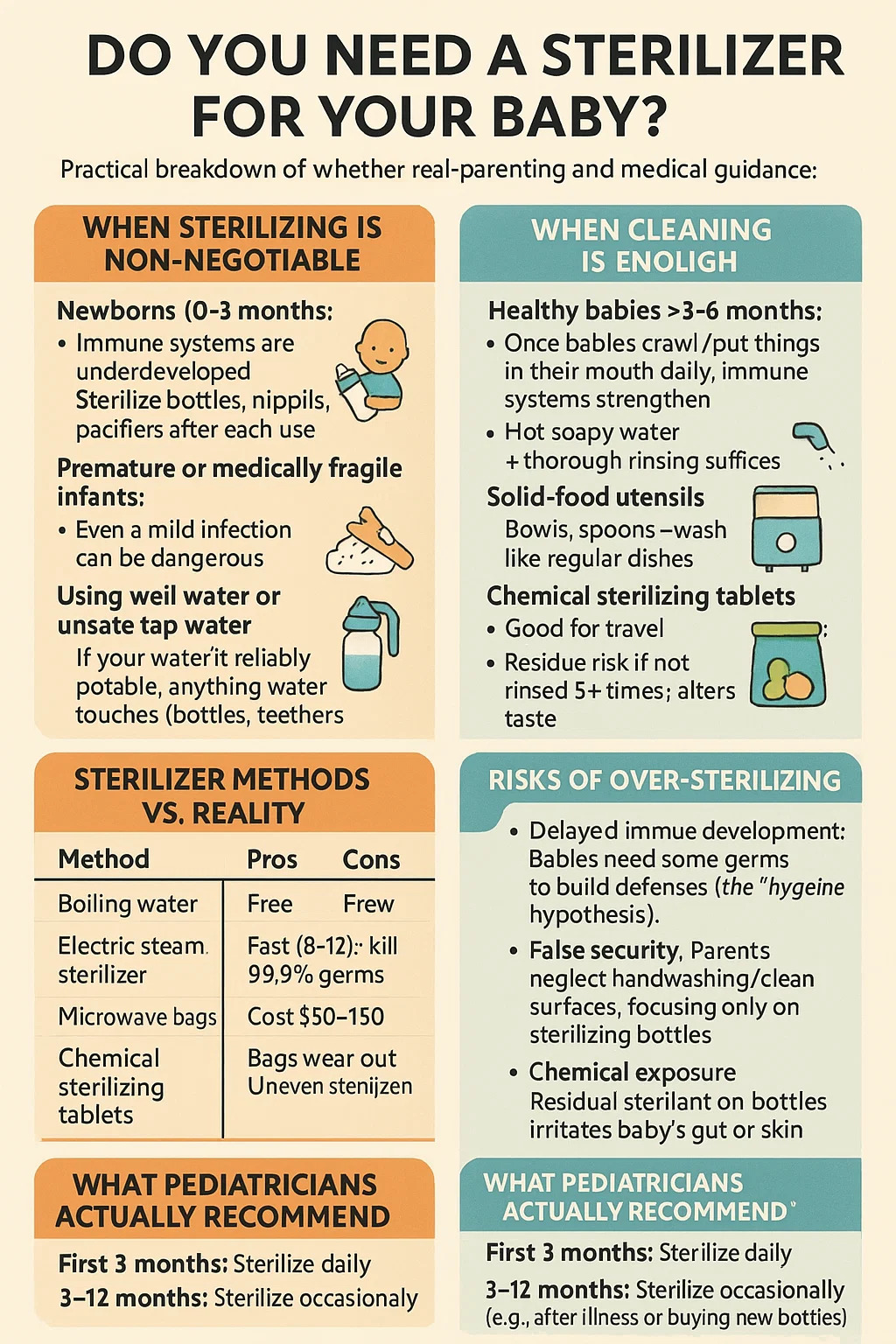 Hier ist eine praktische Aufschlüsselung, ob Babys eine brauchen Sterilisator , basierend auf realer Erziehung und medizinischer Beratung:
