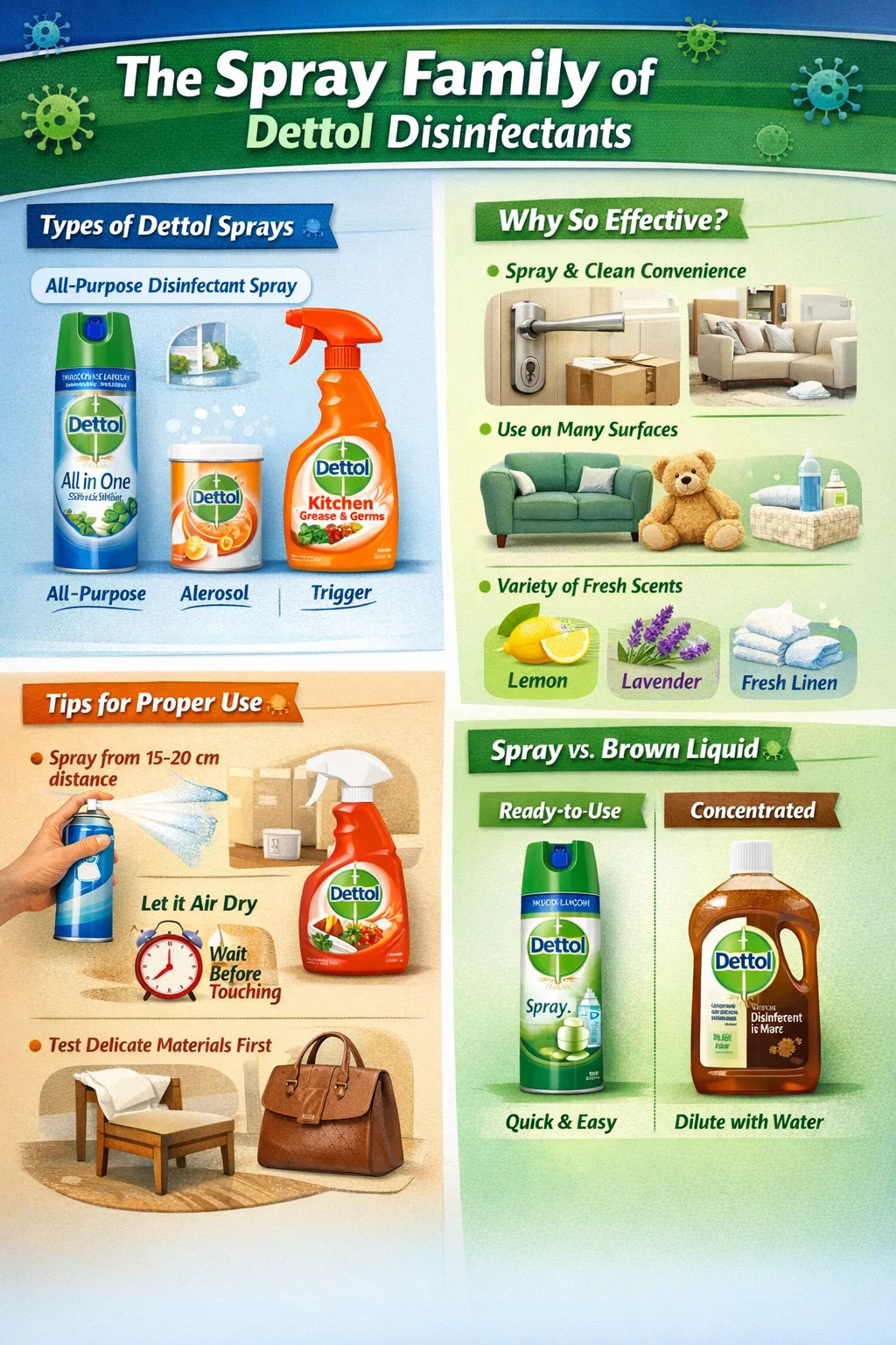 Bei den Sprühprodukten von Dettol handelt es sich nicht nur um eine einzelne Sorte, sondern sie werden üblicherweise in die folgenden Serien unterteilt:
